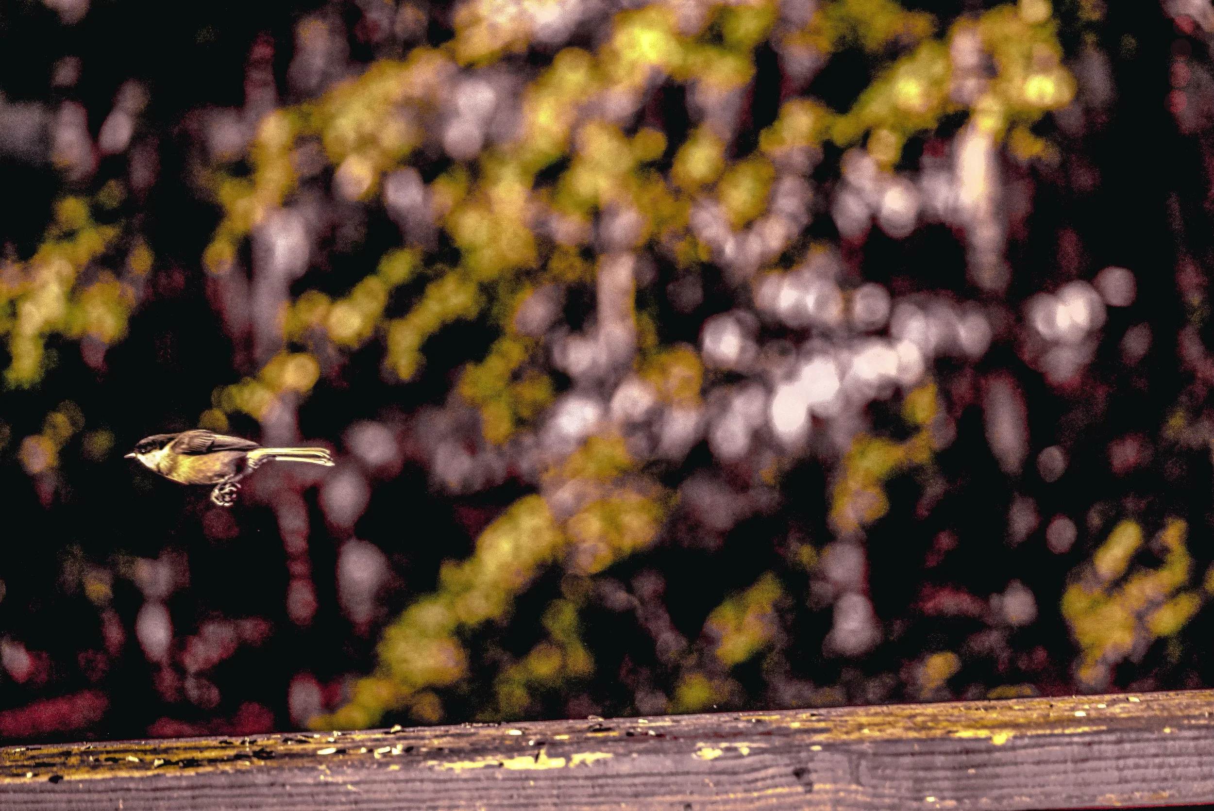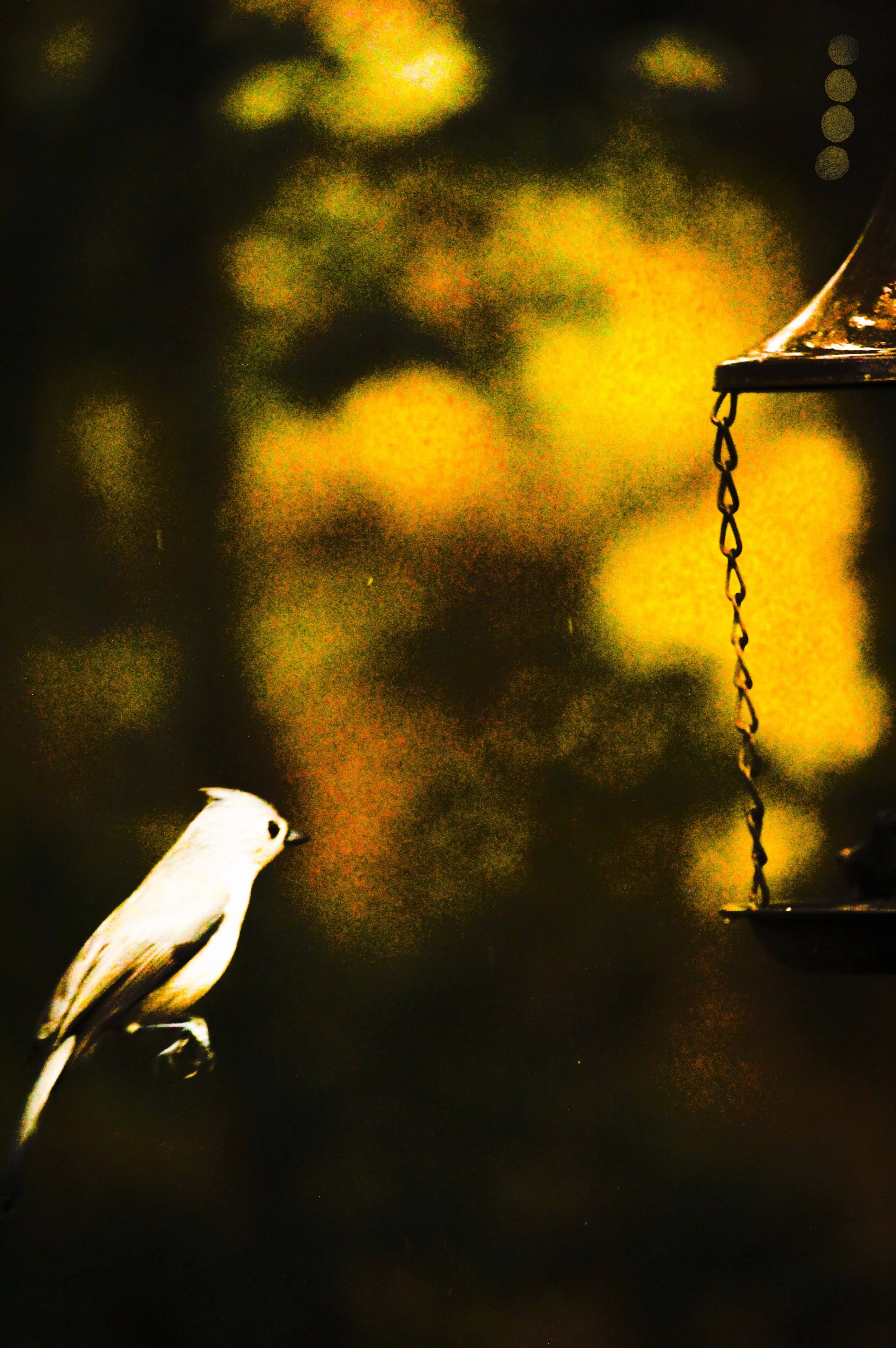 *For exhibitions, the original bird feeders, laterns, and other items featured in the photography will be available to hang/display in the gallery amongst the artwork. Would like to provide patio benches in the gallery to emulate vantage points at which the photos were taken and give a sense of my “studio” environment.